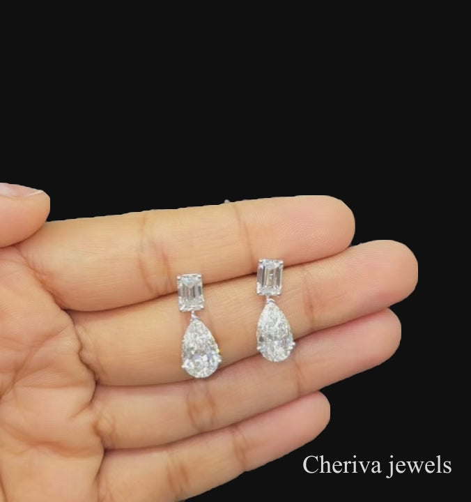 6 CT Emerald & Pear Lab Grown Diamond Drop Earrings